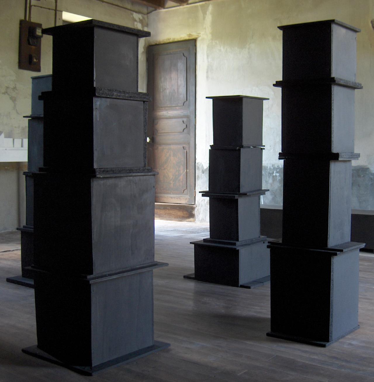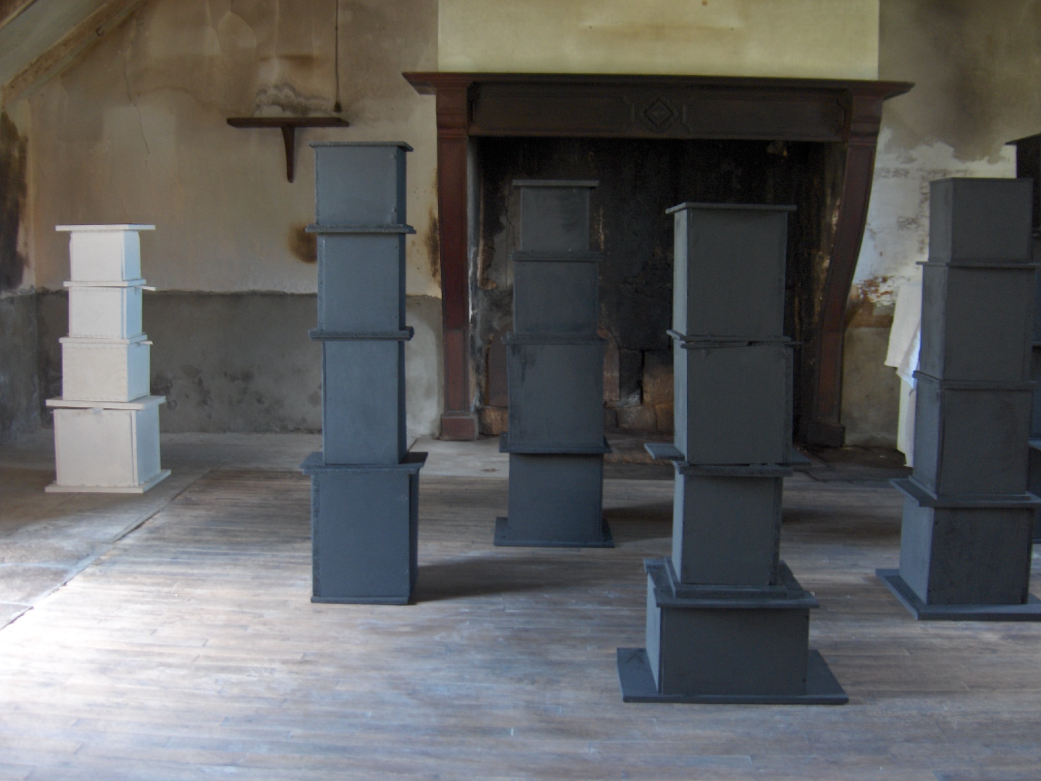 Bâti, Colonne B & Lanternes Sculptures Bâti, Colonne B & Lanternes Bâti noir Bois, peinture. 60 × 60 × 180 cm Bâti blanc Bois, peinture. 70 × 70 × 170 cm Bâti noir Bois, peinture. 60 × 60 × 180 cm Bâti blanc Bois, peinture. 70 × 70 × 170 cm Colonne B Bois, peinture. 40 × 40 × 122 cm Colonne B Bois, peinture. Dimensions variables. Colonne B5 Bois, peinture. 40 × 56 × 122 cm Colonne B4 Bois, peinture. 30 × 30 × 140 cm Lanterne des morts 3 Bois, ciment, métal, peinture. 37 × 60 × 90 cm Lanterne des morts 2 Bois, ciment, métal, peinture. 44 × 58 × 90 cm Lanterne des morts 1 Bois, ciment, métal, peinture. 37 × 60 × 97 cm Lanterne Travail en cours, ciment, bois, métal.