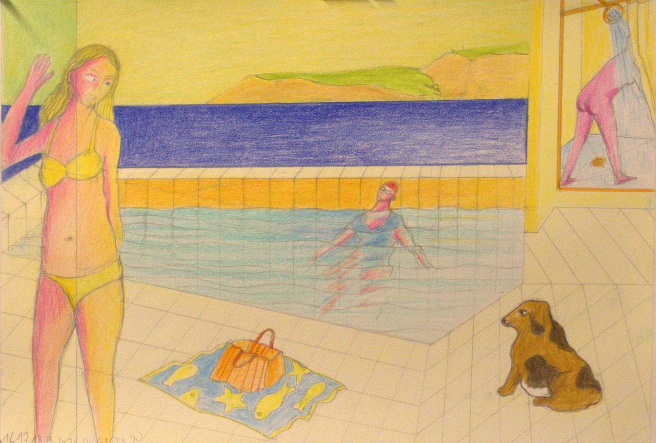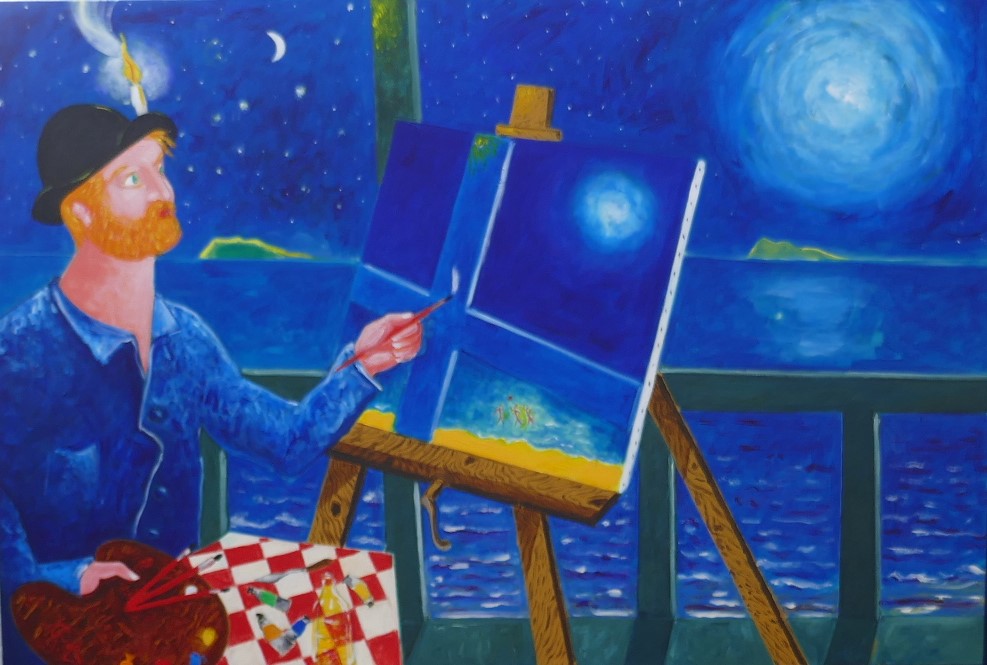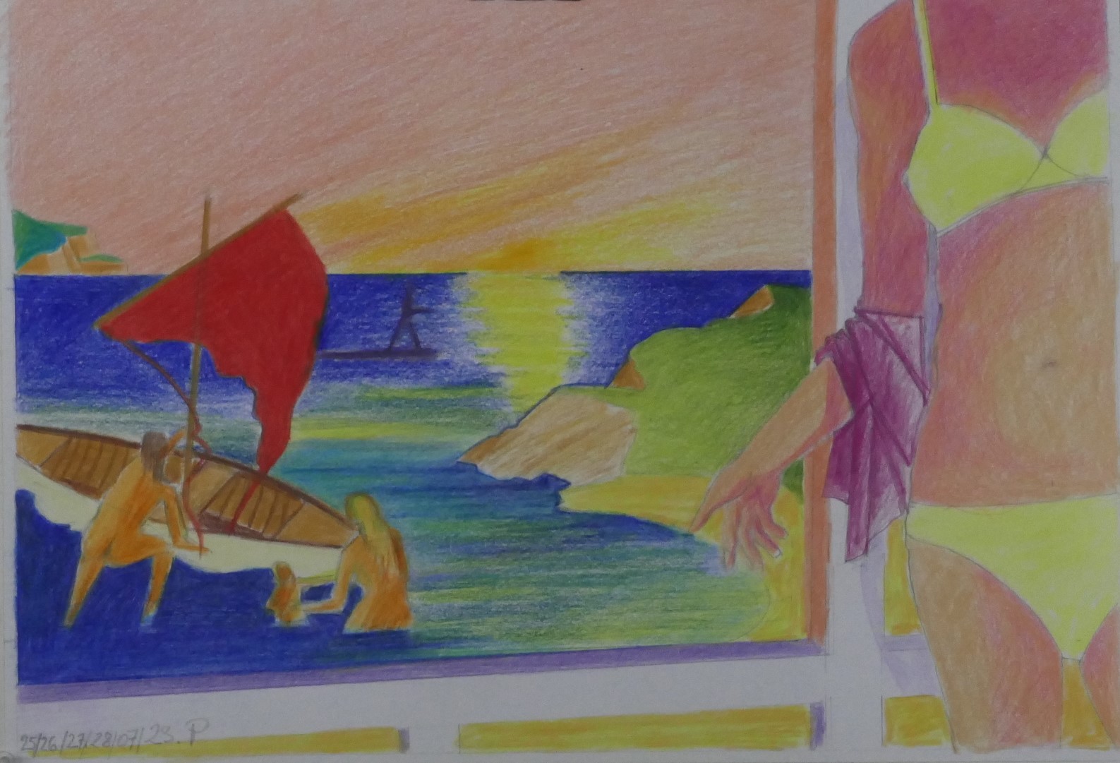 Bord de mer Peintures Bord de mer Les gauloises bleues Acrylique sur toile, 100x150 cm. juin juillet 2023 La blouse bleue Crayon de couleur sur papier Clairefontaine, 29,7x42 cm. 2023 Bord de mer 3 Crayon de couleur sur papier Clairefontaine, 29,7x 42 cm. 2023 Bord de mer 4 Crayon de couleur sur papier Clairefontaine, 29,7x42 cm. aout 2023 La voile latine Crayon de couleur sur papier Clairfontaine, 29,7x 42 cm. aout 2023 Les voiles latines Acrylique sur toile, 100x150 cm, 2023 Le Bassin Crayon de couleurs sur papier paint one, 29,7x42 cm, 2023 Van Gogh in the night, la nuit étoilée Acrylique sur toile, 100x150 cm, 2023.