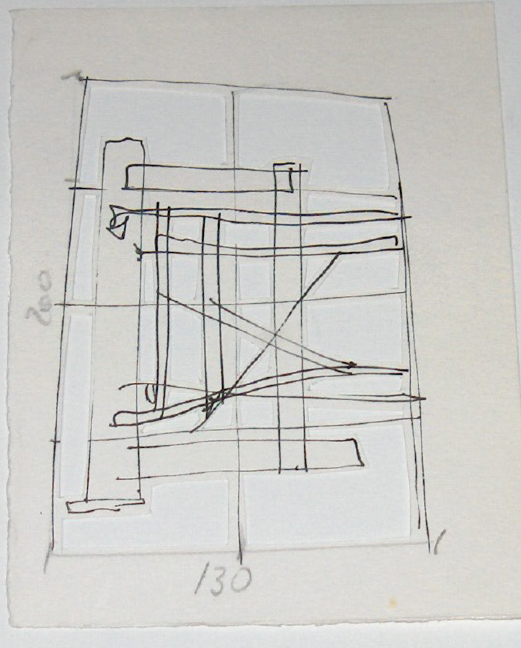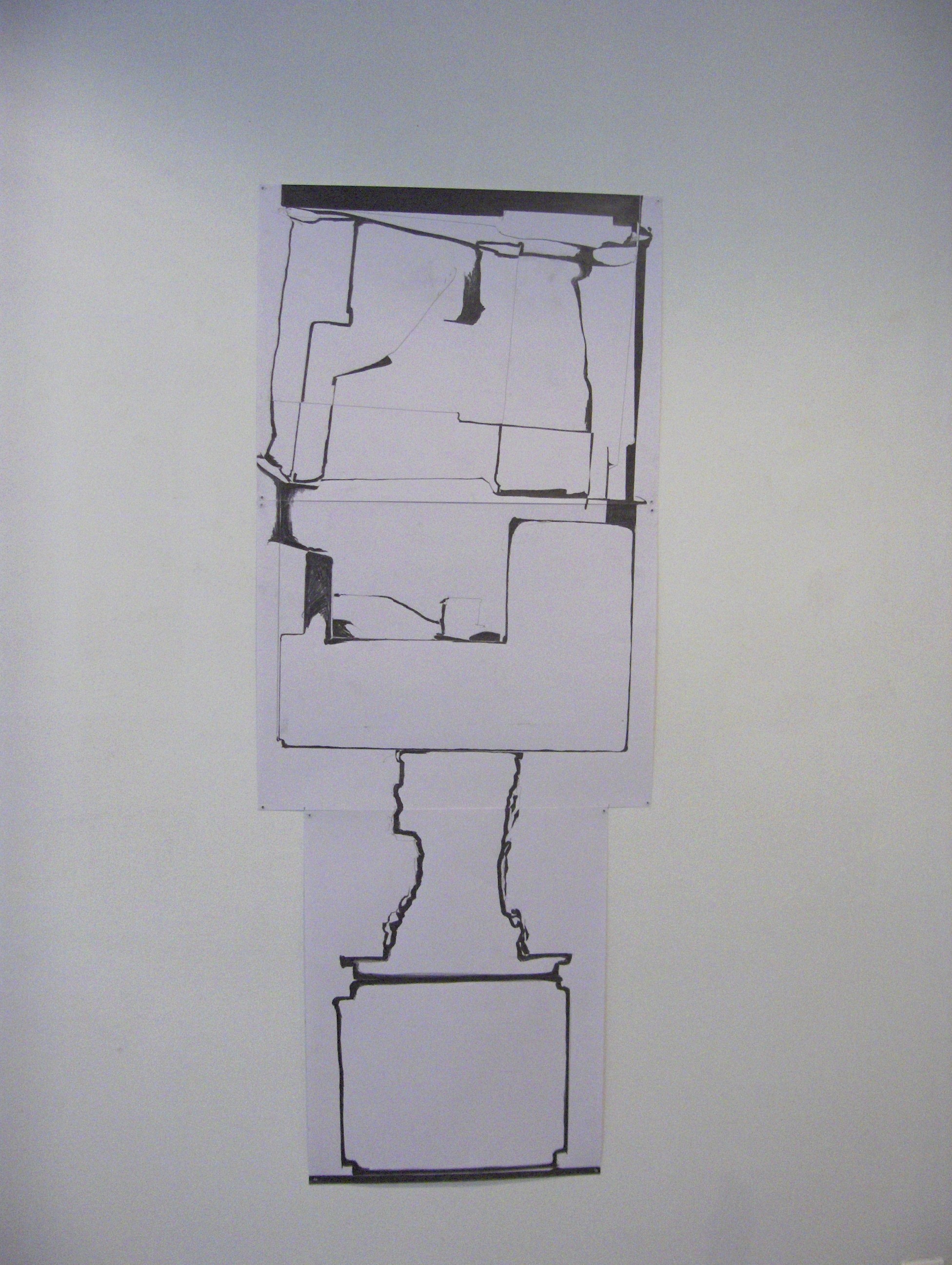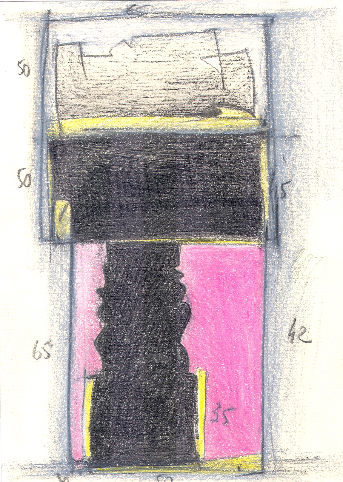 Dessin qui se donne à voir à la fois comme représentation de la sculpture et son plan, indication de sa situation dans l’ensemble de la série.
