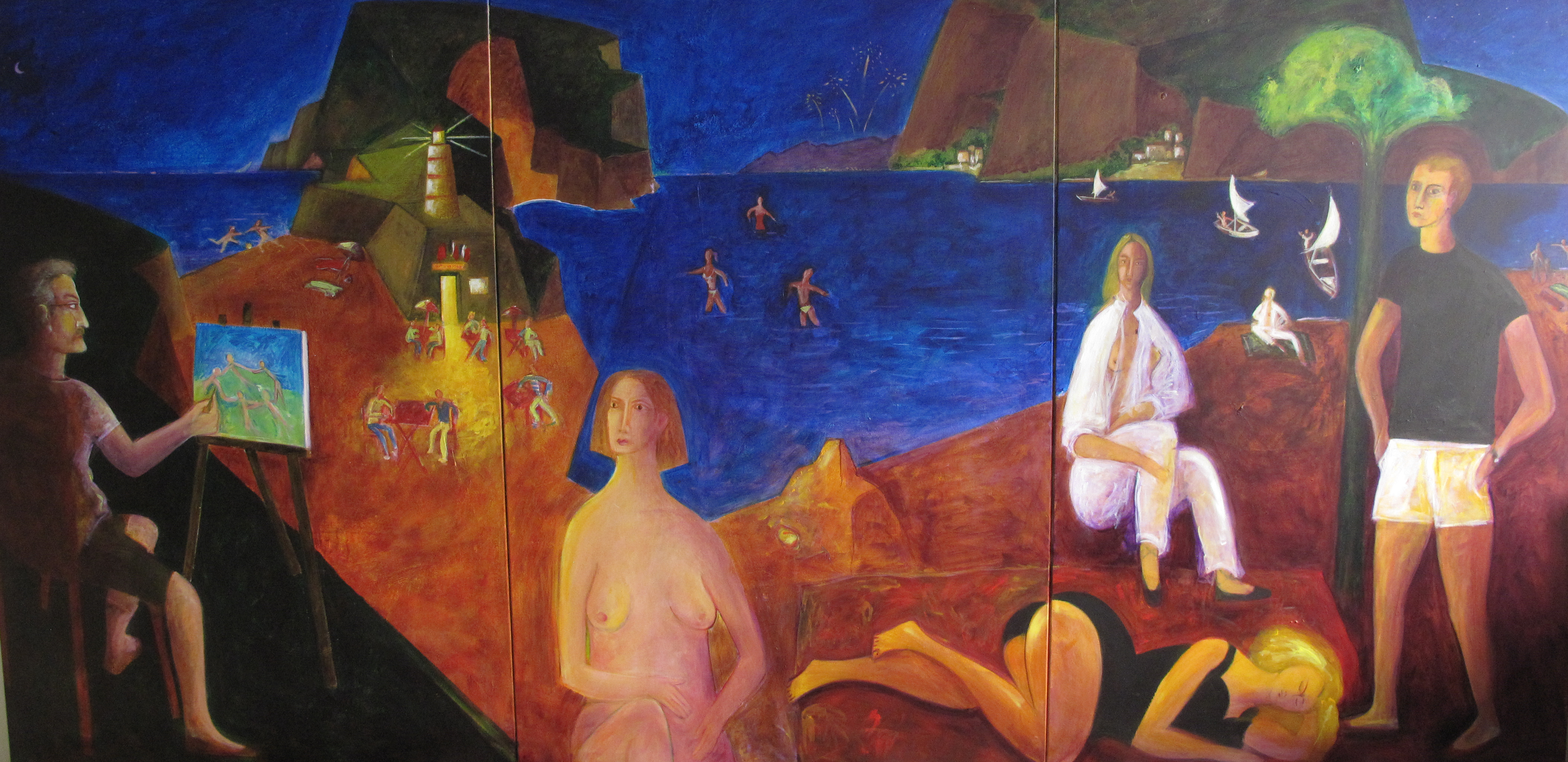 Les Beaux Jours Peintures Les Beaux Jours 1 Acrylique sur toile, triptyque, 195 × 390 cm. 2 Acrylique sur toile, 114 × 146 cm. 2 - Le Chien endormi Acrylique sur toile, diptyque, 100 × 162 cm. 3 Huile sur toile, diptyque, 116 × 178 cm. 4 - En attendant la nuit Huile sur toile, 114 × 146 cm. 5 - Chez Juliette Huile sur toile, 114 × 146 cm. 6 - La Photo Huile sur toile, 114 × 146 cm. 7 - Pétrarque à Thulé Huile sur toile, 114 × 146 cm. Également dans Les Beaux Jours 2018 Les Beaux Jours