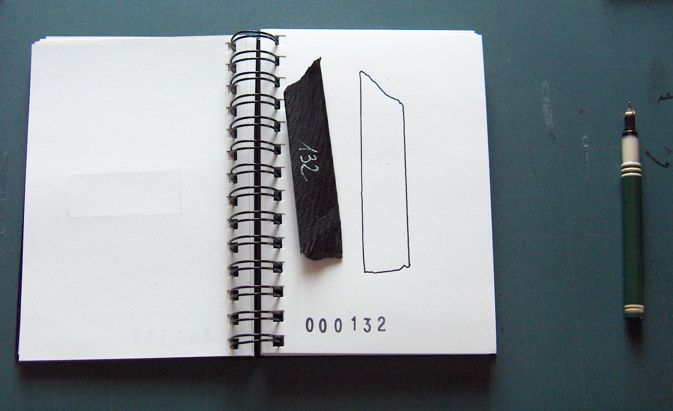 Le contour de chaque fragment est dessiné à l’encre dans un carnet à dessin à reliure spirale.