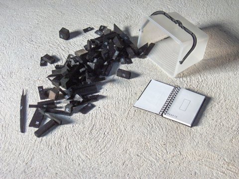 Ces fragments lancés, projetés, alignés, rangés, permettent de constituer un dessin/sculpture éternellement renouvelable, toujours identique dans le processus et différent dans le résultat.