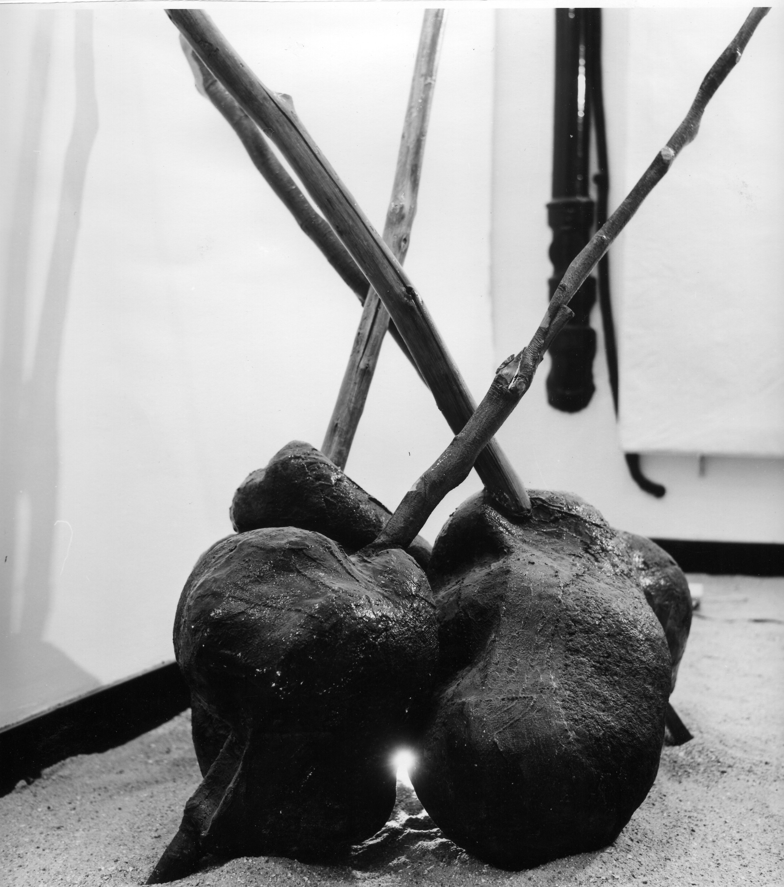 Dans leur texture et leur forme, les créations actuelles conservent, intacte, l’empreinte du moule initial. Destinés à être jetés, le sac de toile et le cageot, utilisés comme moules, marquent de leur sceau l’oeuvre achevée, transfigurant la banalité des matériaux récupérés.