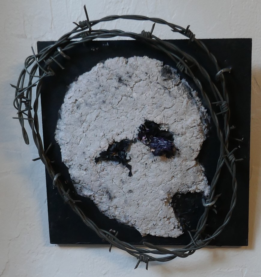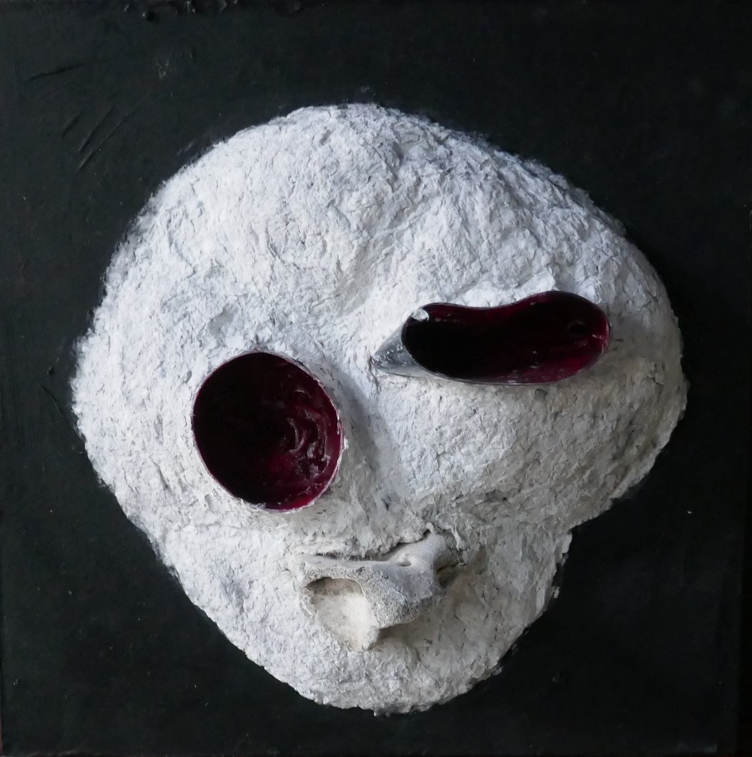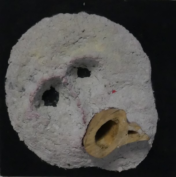 VCPapier mâché, os à moelle, encre de Chine, bois, 21x21 cm, 2023